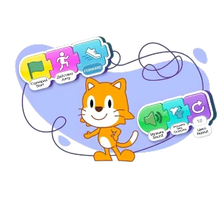 На курсе ребята шаг за шагом освоят главные принципы программирования: алгоритмы, циклы, условия, переменные и события — создавая свои игры и анимации в Scratch
